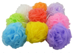 material of bath sponge body is PE mesh, so it is health for skin. there is attached ribbon on the products, you can add your LOGO on the products.