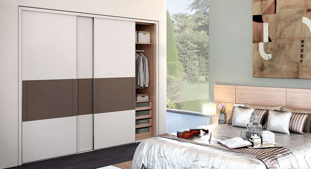 YG91553: Contemporary Beige Lacquer Sliding Wardrobe