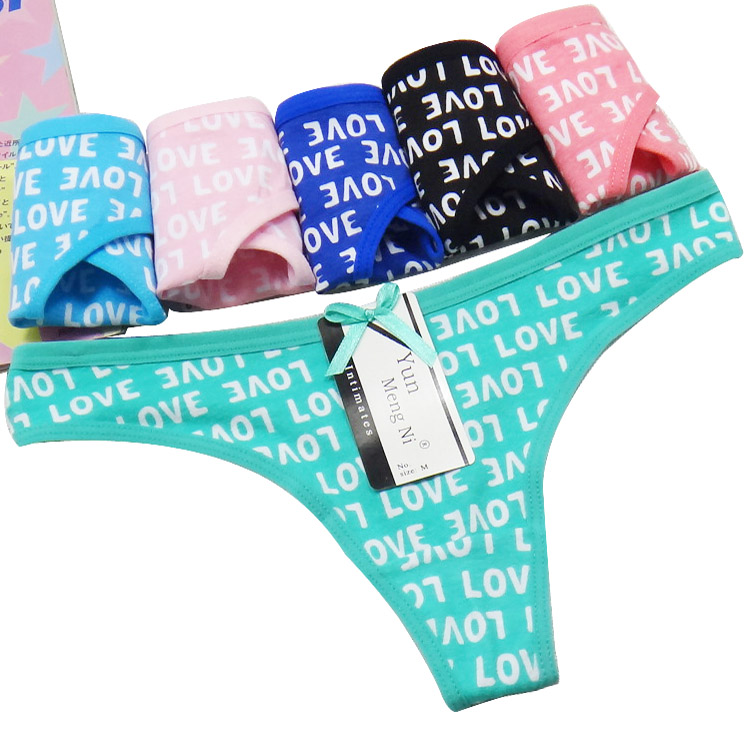 #87291 New desgin yun meng ni wholesale most popular cotton lady g-string letter's love printing underwear thongs