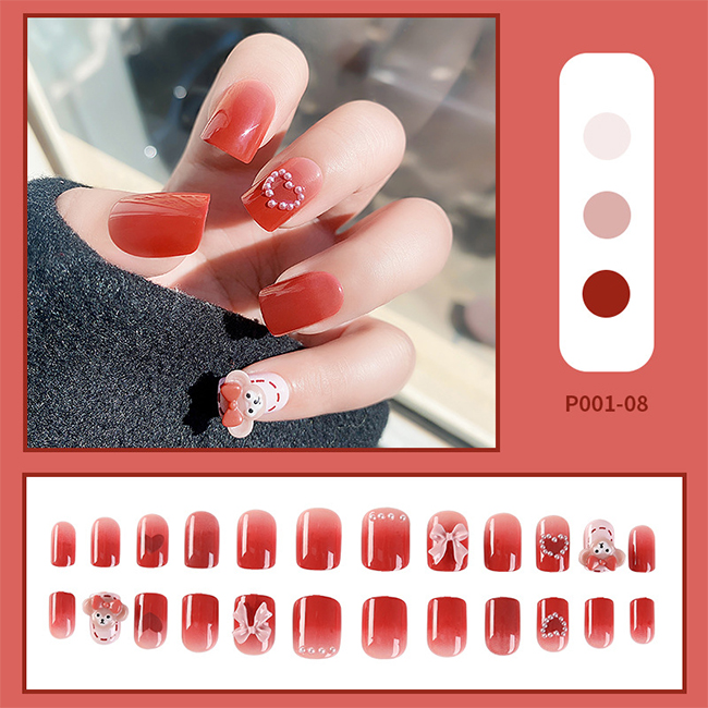 Packing:24 pcs/box Steps for usage1.Clean the nail surface with a cleaning sheet;2.Choose a nail tips piece of the right size (a littlesmaller and more naturalthan the nail);3.Put the nail g…