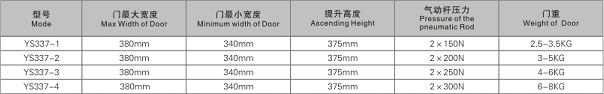 D: compare with YS337-A upward opening cabinet support mechanism