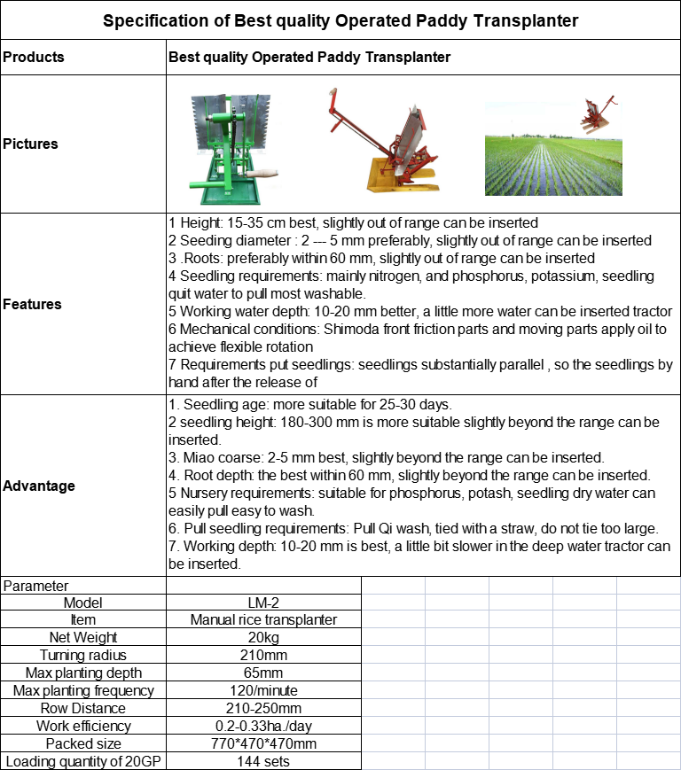 Best quality Operated Paddy Transplanter