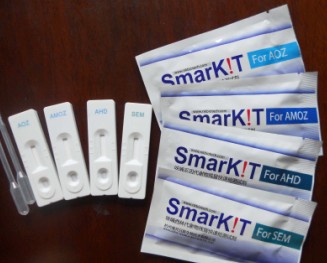 The Nankai Biotech Nitrofurans Metabolite Residue Rapid Test Strip is used to qualitatively or quantitatively detect Nitrofurans Metabolite (AOZ+AMOZ+SEM+AHD) in seafood and fish, honey, meat, milk an…