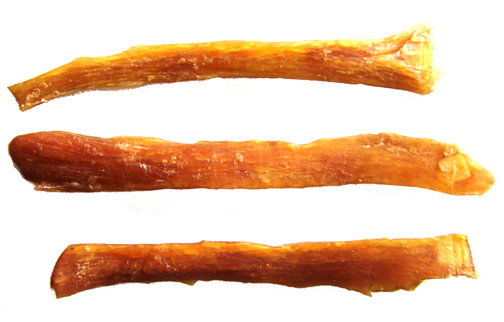 100% beef tendons that create an excellent long lasting chew. They’re great for teeth and excellent way to reduce tartar build up. They are approximately 8" - 14”.