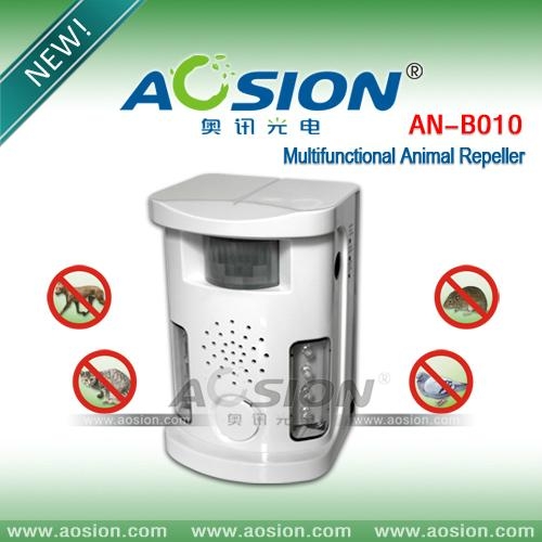The device can emit ultrasonic, strong flash,high-decibel sound waves to drive away animals (such as cats, dogs, birds, mice, etc.) via function adjust button A according to different environmental ne…