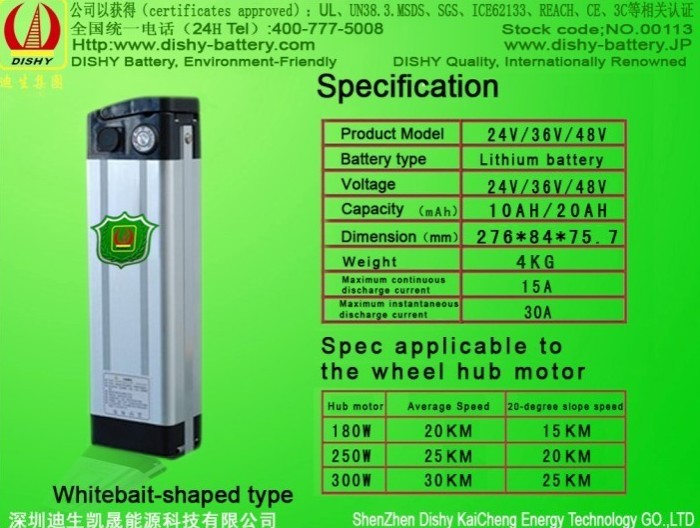 24V 20AH Lithium/Li ion E bike battery powered bicycle(Whitebait shape)