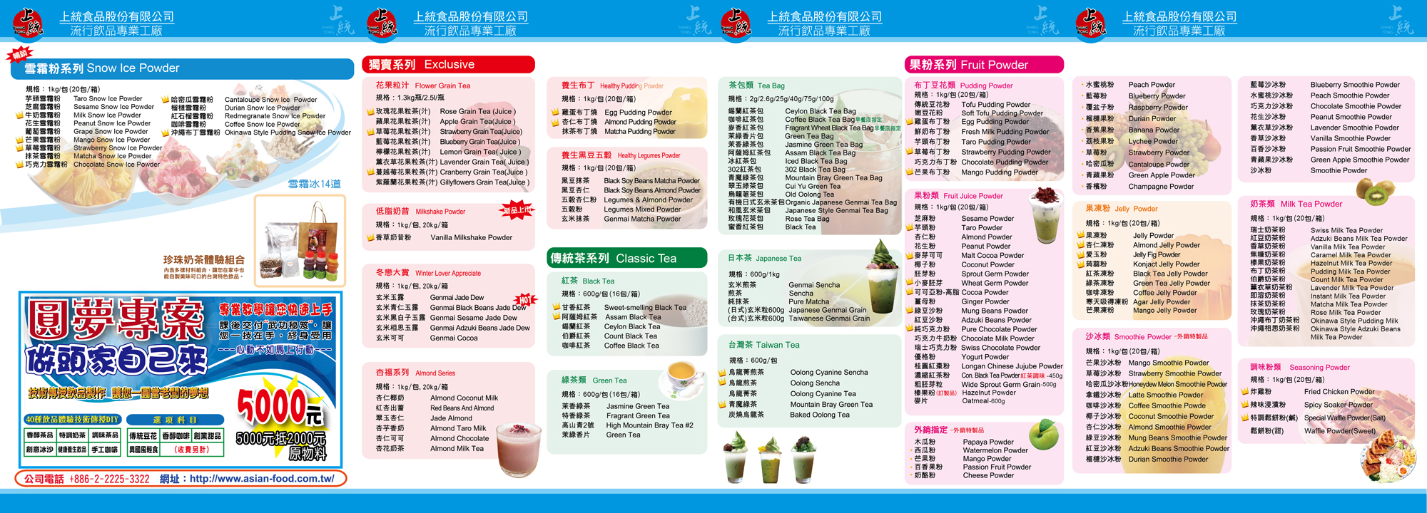 We are Shang Dao(Shang-Tong) Food International Corporation based in Taiwan, which is a manufactory of bubble tea. We have Chinese and Taiwanese tea leaf, juices, flavor powder, creamer, topping, smoo…