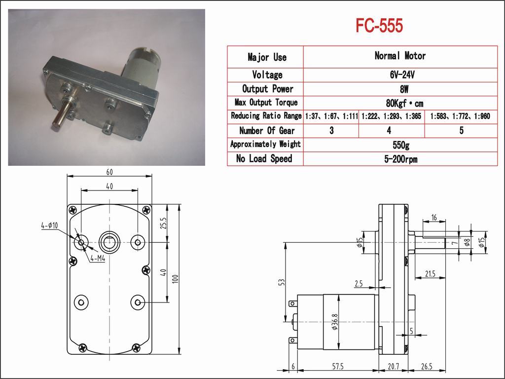 Gearbox size:95mm*60mm
