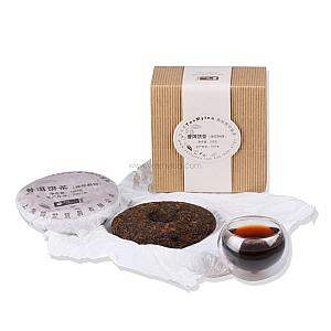 Pu’er displays a neat shape, tight and clear strip, brown red color, dark and red in liquor. There’re oil films on the surface of the liquor. Dried tea has a pronounced pleasing aroma. The hot fragra…