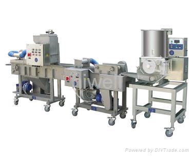 Batter Feeder GYJ600-Ⅱcan be used together with the battering machine SJJ600 or NJJ(tempura)600 to realize the accuracy portion control of the batter.
