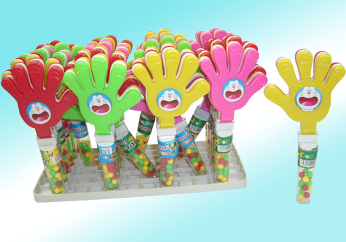 This kind of candy with toy is called clapping hand, it can load the chocolate bean and also can load the pressing candy,according to the choice of the customer.