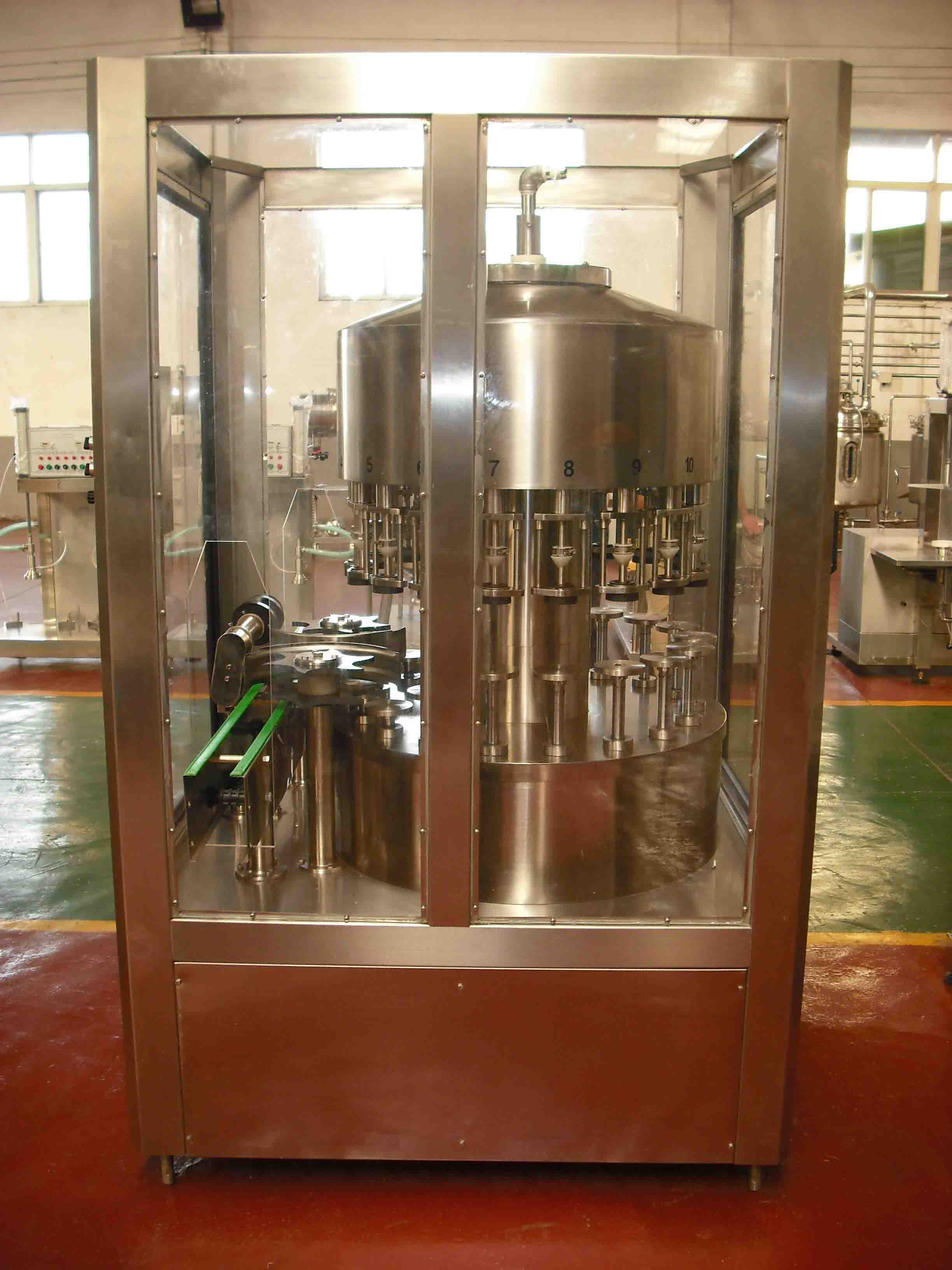 Negative pressure filling machine is mainly used in filling of foaming liquids, such as wine, soy sauce, vinegar, pesticides, etc.
