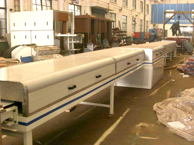 The machine is made up of tunnel refrigerating box, PU adhesive tape transmitting equipment, refrigerator array, cool air conveying system and electrical control system. Its functio…