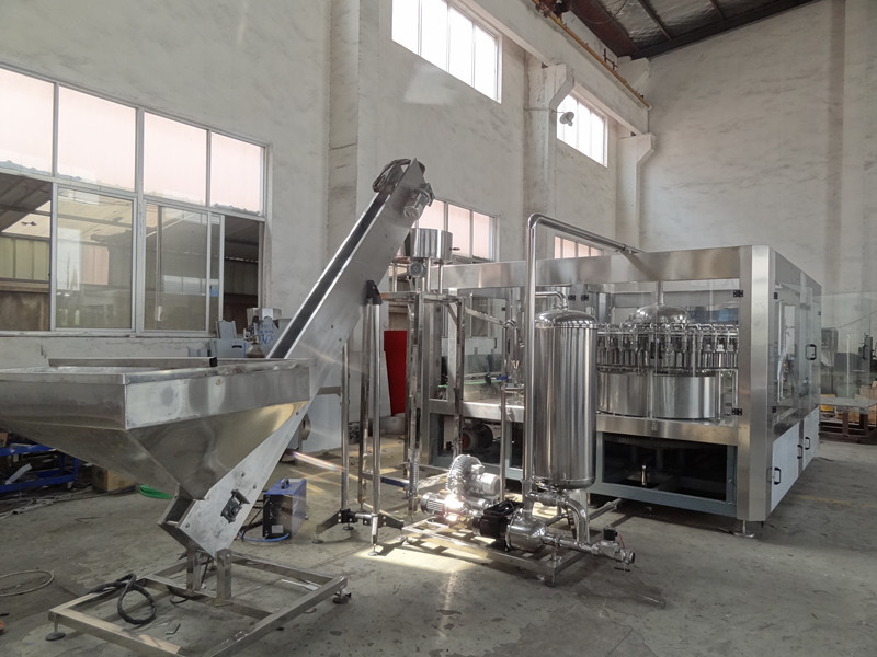 Usage: Washing, filling and capping 3 in 1 monoblock is used for filling juice into PET bottle. Full automatically; it can finish washing (bottle), filling and capping three jobs in the one machine.