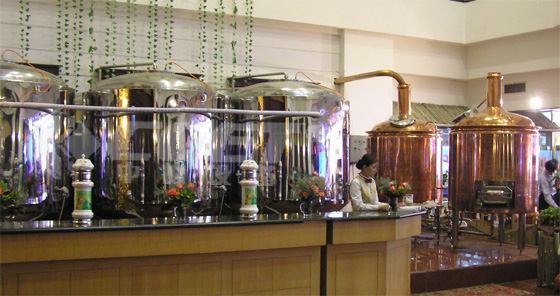 Hotel beer brewing equipment is a good choice for ginshop, barbecue, restaurant, who brew beer for the customer at scene.The characteristics of this equipment are: fabrication at scene, maintain the f…