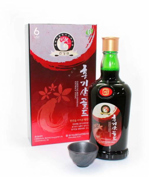 It is a Korean Red Ginseng Beverage made from 6 year red ginseng extract, the main ingredient, ideally mixed with Paeoniae Radix, Cnidi Rhizoma, Rehmania, Astragali Radix and etc.