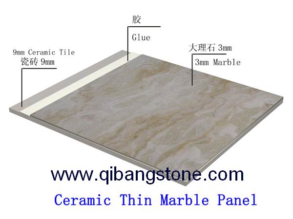 (1). 3mm marble laminated with 9mm ceramic back,total 12mm thick,with largest size 800x800mm.