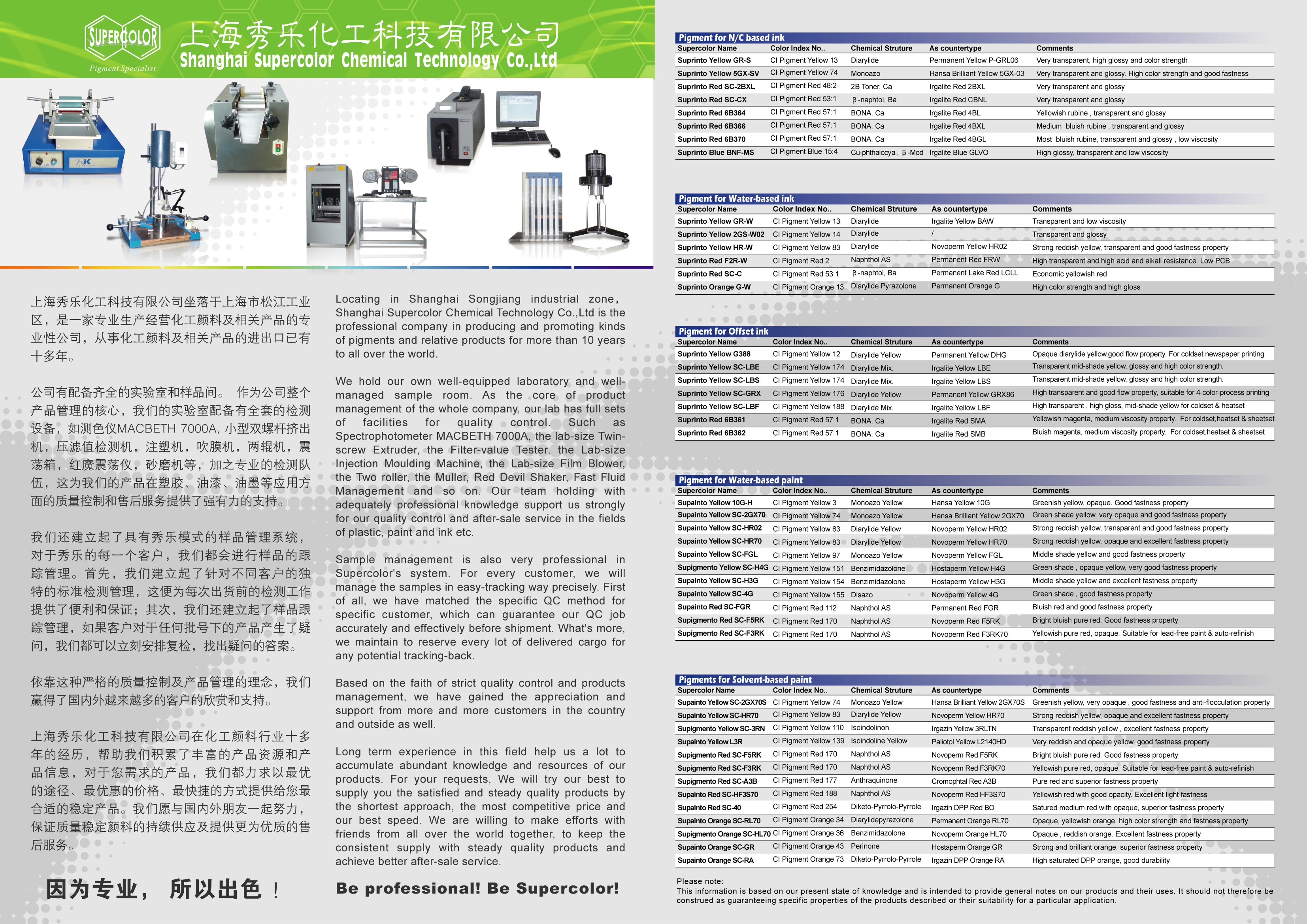 For water-based ink:PY13,Y14,Y83,R2,R53:1,PO13.
