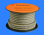 Graphited PTFE packing with aramid corners
