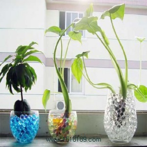 Water gel pearls,a colorful and clean flower soil.They are able to absorb a lot of water,and then release water gradually to supply plants and flowers for a long time.