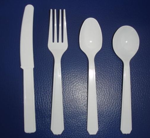 We have many plastic disposable cutery, made of PP/PS. Including knife, fork,spoon,tea spoon, spork,plate,etc.