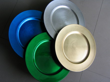 We are producing all kinds of charger plate in different color,different style and different size.