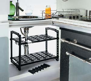 The under sink storage shelves are specially designed to fit under the kitchen sink,