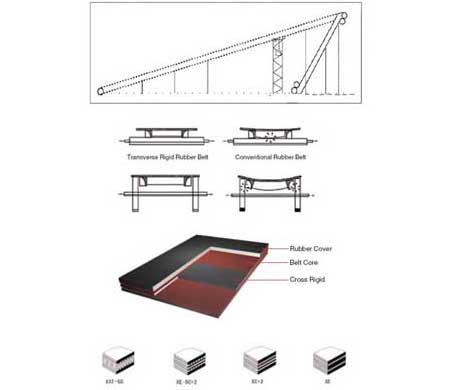 These belts are used, when material has to be conveyed at steep angles without allowing slip back of the load.
