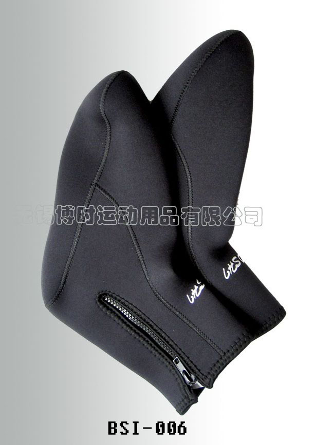 FEATURES: 1) 5mm neoprene, glued and blind stitched, reinforced sole.
