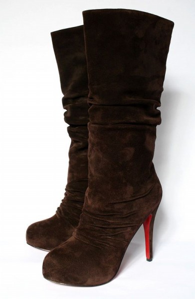 Christian Louboutin velours scrunch boots brown,chic by the scrunch arounding the vamp and shaft,the red leather sole also makes elegance and sexy.