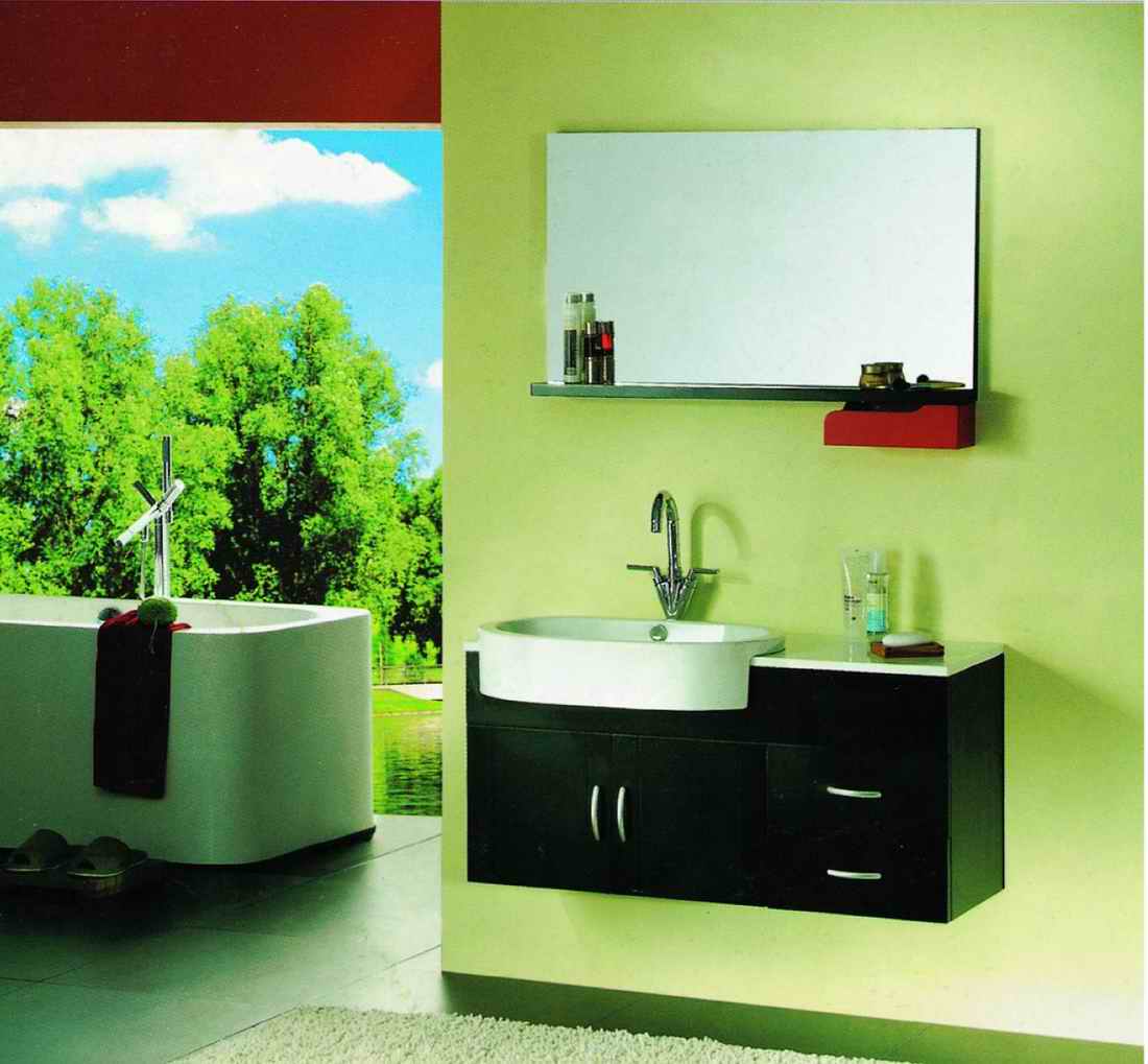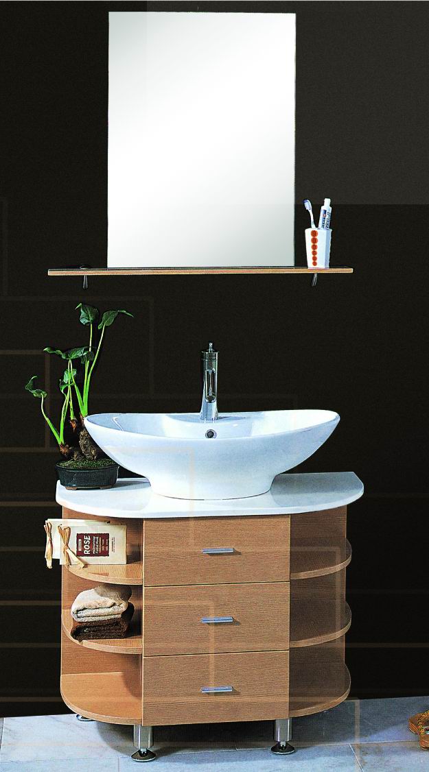 Thailand imported Oak wood vs ceramic basin vs glass mirror.