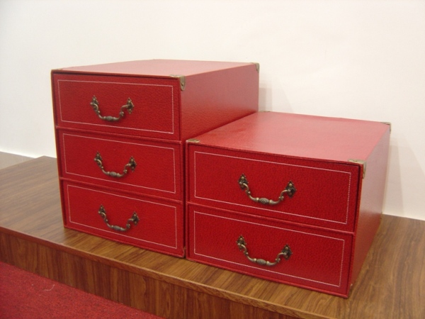 The stationery boxes with two or three drawers to store documents or files.