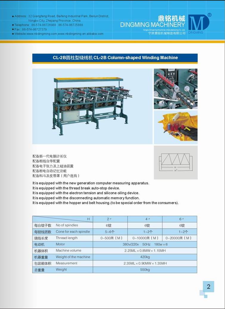 CL-2B reel cone type thread winding machines are specially designed to wind polyester sewing thread, nylon thread,DTY,FDY,PP thread etc onto standard specifications of plastic cones.