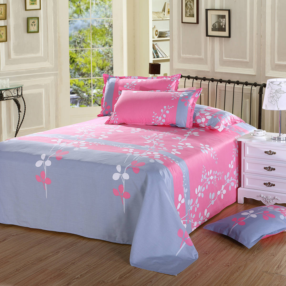 We supply all kinds of 100% cotton printed bed sheets for home use. The reactive dyeing makes it have high fixation of color. And the 100% cotton fabric makes it comfortable and warm. The t…