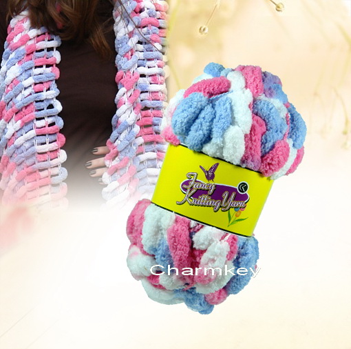 Knitting Yarn of POM POM yarn. This fancy knitting yarn is very popular in this year and is used for scarf and hat. Various color and style could be made.