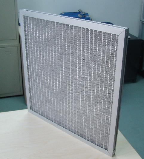 The filter material is made of the waving aluminum mesh or the expanded stainless steel mesh;