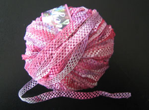 This yarn is a kind of mesh yarn. It looks beautiful. It can be used to make scarf, bindings, etc.