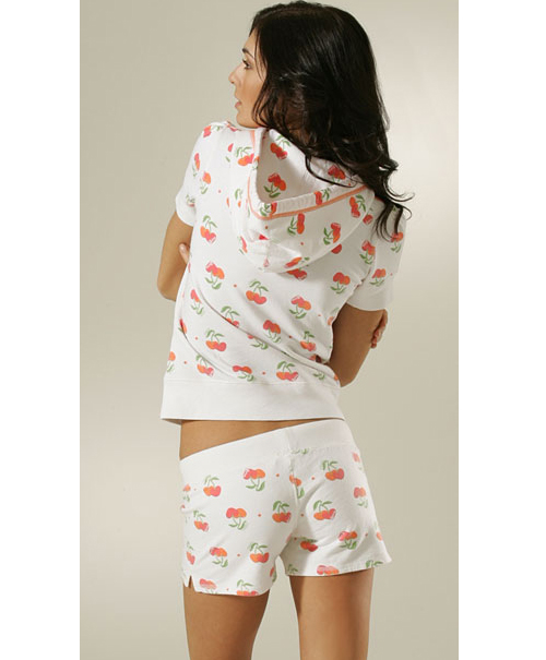 cherry print and thick drawstring at hood.