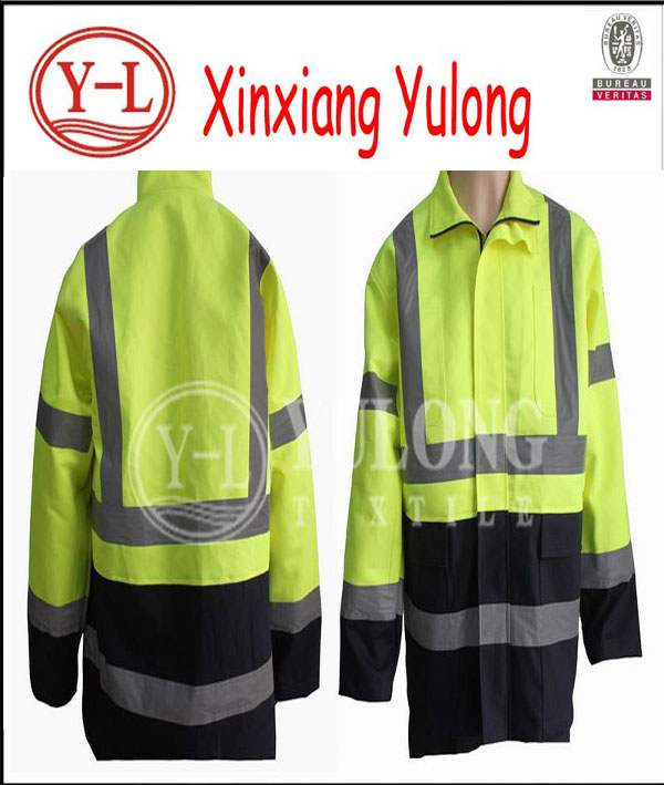 This high visibility jackets adopts poly/cotton interweave fluorescent fabric. It is high visibility, more safety, improve recognition degree in low-light environment, reduce the risk. the fabric is b…