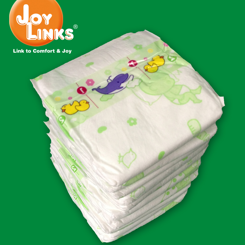 (A series) Disposable Baby Diaper Features: *Dual layer design of absorbent core. *Printed, Embosssed PE Film backsheet with wetness indicator. *Waterproof leg cuffs. *Acquisition Distribution layer i…