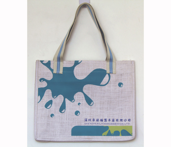Product Name: burlap bag Model: LYS-B-03 Material: burlap Printing: 4C printing(to be customized) MOQ:1000PCS Usage: shopping bag, eco-friendly bag,gift packing bag, promotion bag,garment bag…
