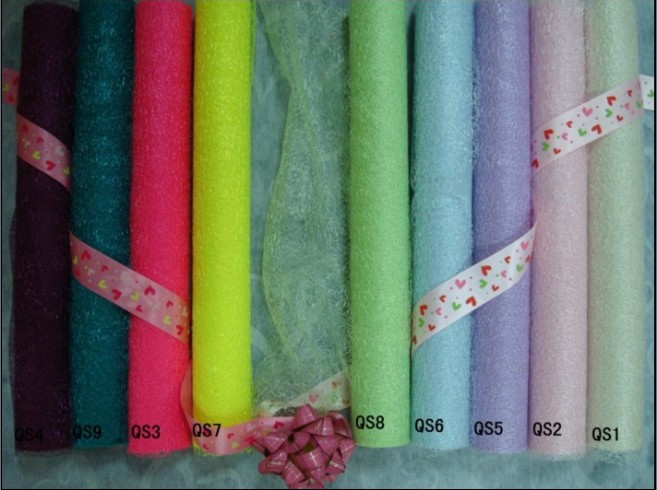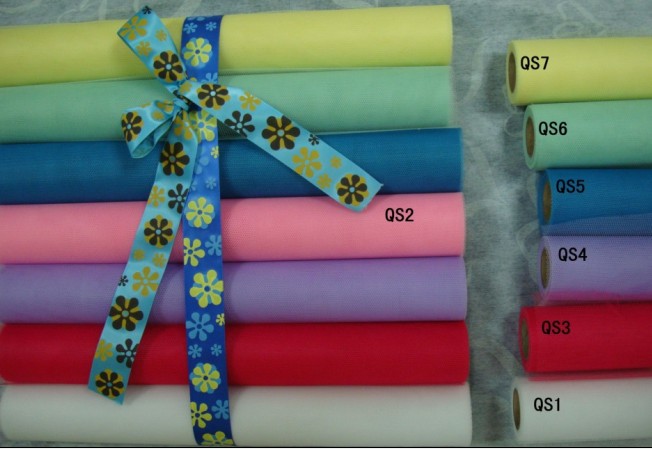 USING 100% POLYESTER FOR THE TULLE WITH THE TOUGH FEELING IN HAND FOR THE GIFT AND FLOWERS' WRAPPING. WE CAN PROVIDE THIS ITEMS BOTH IN ROLLS AND CUT INTO PIECE.