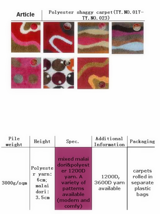 Polyester shaggy carpet(TY.NO.017-TY.NO.023)