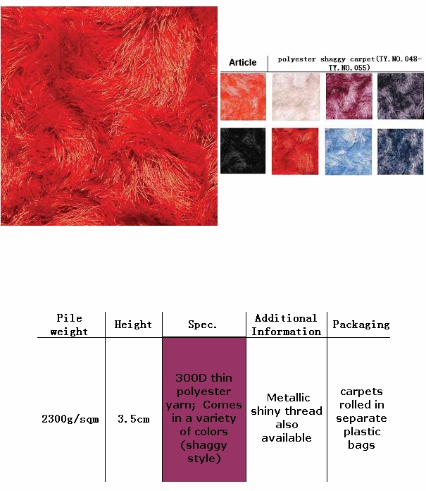 polyester shaggy carpet(TY.NO.048-TY.NO.055)