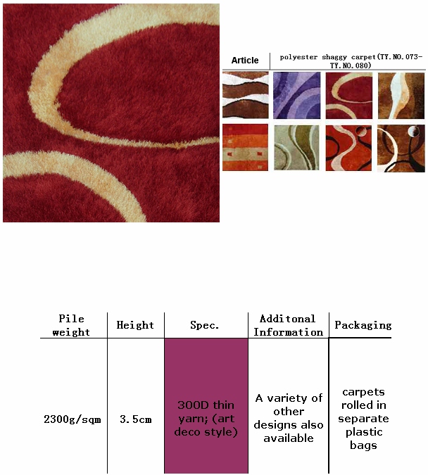 polyester shaggy carpet(TY.NO.073-TY.NO.080)