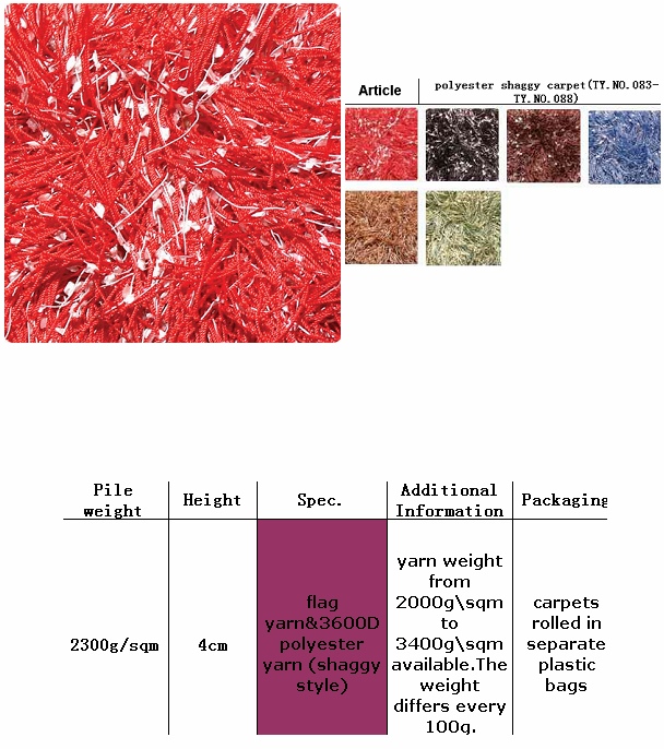 polyester shaggy carpet(TY.NO.083-TY.NO.088)