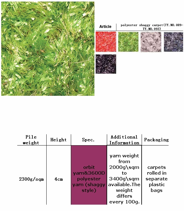 polyester shaggy carpet(TY.NO.089-TY.NO.093)