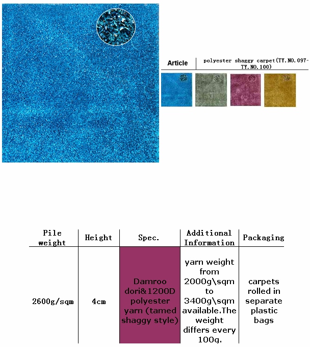 polyester shaggy carpet(TY.NO.097-TY.NO.100)