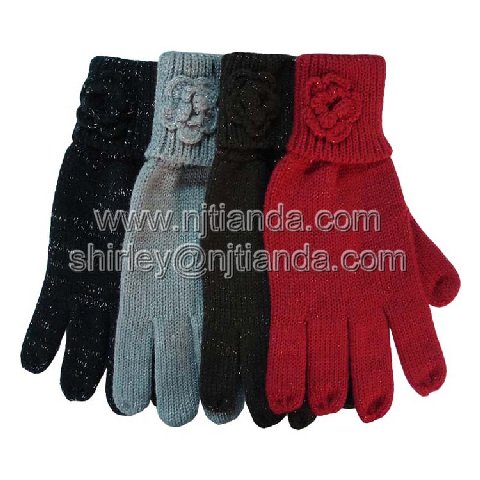 acrylic knitted glove with purl with handmade flower