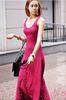 Women U neck sleeveless fushia mesh V back floor length beach maxi dress